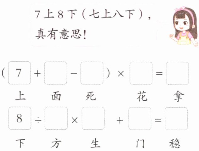 6. 跨学科语文 在下面的方框里填上数字,使它变成五个成语和两道等式。