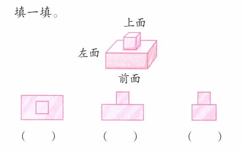 1. 你知道下面的三幅图分别是从哪个方向看到的吗?把相应的序号填在括号里。