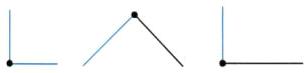 【点拨】第一个给出顶点,将三角尺直角的顶点与该点重合,然后画出直角的两条边;第二、三个给出顶点和一条边,把三角尺直角的顶点和这个点重合,一条直角边和这条边重合,从顶点沿着另一条直角边再画一条直直的线即可。