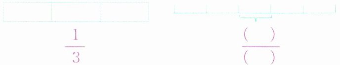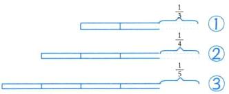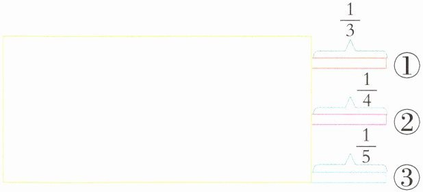 ③ [点拨]$\frac{1}{3}$表示将一条丝带平均分成了3份,露出的丝带只是其中的一份,所以应再画2份;同理,$\frac{1}{4}$应再画3份,$\frac{1}{5}$应再画4份。每份的丝带长度相同,则份数越多,丝带越长,所以③号丝带最长。