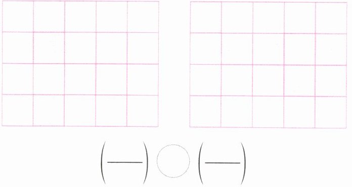 $\frac{8}{20}<\frac{10}{20}$ [点拨]长方形被平均分成了$4×5=20$(个)小正方形,题图中有若干个0,涂色部分是小正方形的一半,2个这样的涂色部分正好和1个小正方形的大小相同,数小正方形时,可以把2个这样的涂色部分数成1个小正方形。还有涂色部分是2个小正方形的一半,相当于1个小正方形的大小。