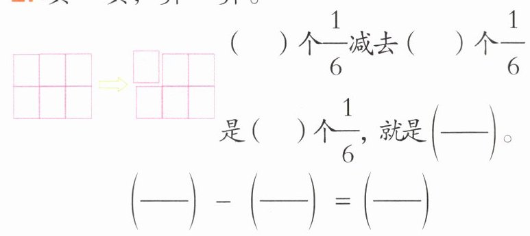 3 1 2 $\frac{2}{6}$ $\frac{3}{6}-\frac{1}{6}=\frac{2}{6}$