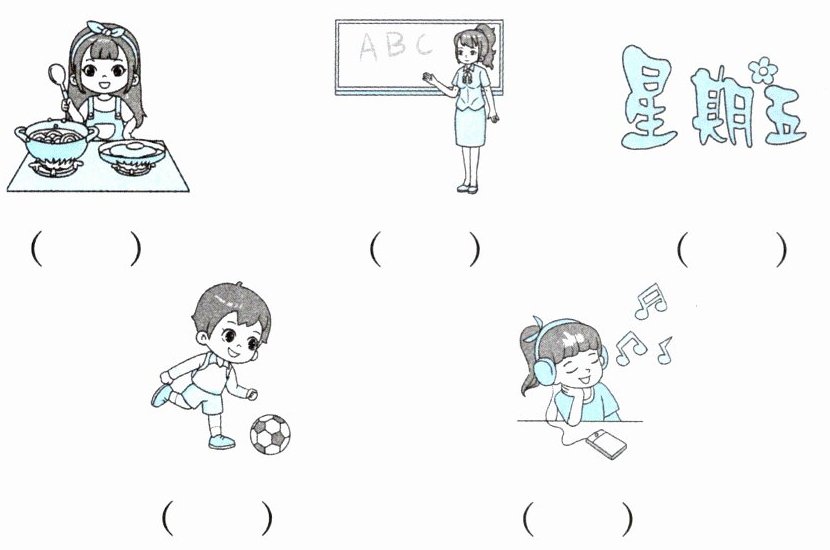 5 3 4 2 1【点拨】做此题,首先仔细观察5幅图片。然后仔细听录音,给图片排序。