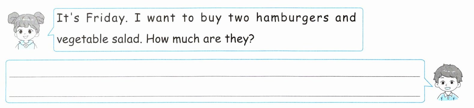 It's Friday. I want to buy two hamburgers and vegetable salad. How much are they?