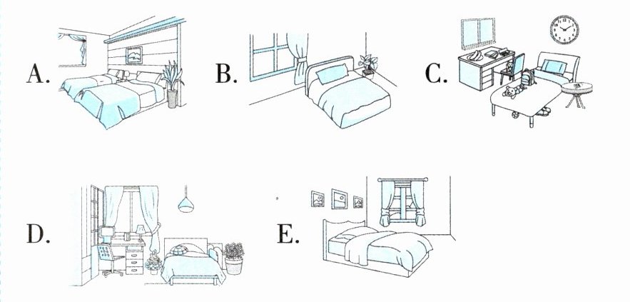 四 同学们在谈论自己的卧室。听他们对自己房间的介绍,为他们选出各自的房间吧。