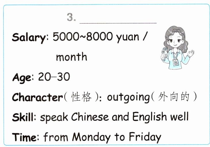 )3. Lucy is shy. She can be a reporter.任务三:新 趋势·思维探究 假如你长大后想竞聘其中一个岗位,根据招聘信息,写一份"竞聘申请"。