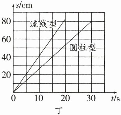 (4)根据实验数据绘制出s-t图像,如图丁,由图像可知:其他条件相同时,流线型蜡柱上升的速度____