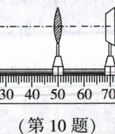 10.C 解析:A.如题图所示,此时物距为40cm,像距为20cm,烛焰在光屏上成清晰的像,此时的像为倒立、缩小的实像;根据光路可逆原理可知,保持蜡烛和光屏位置不变,当物距为20cm时,像距为40cm时,仍可在光屏上成清晰像,此时物距小于像距,成的是倒立、放大的实像;保持蜡烛和透镜甲在图示位置不变,将透镜甲换成透镜乙,再向左移动光屏到N 点,光屏上能成清晰像,像距变小,说明透镜乙对光的会聚能力更强,成的像更小,是缩小实像,故A错误;B.透镜乙对光的会聚能力更强,所以透镜乙的焦距小于透镜甲,故B错误;C.由A项分析可知,将透镜甲向左移到M点,此时物距为20cm,所以M点在30cm刻度处;操作2中,透镜位置不变,N点在透镜右侧,所以,M点和N点之间距离一定大于20cm,故C正确;D.完成操作2后,光屏上成的是缩小实像,结合题目分析可知,此时物距与像距之和大于四倍焦距,成等大实像时,物距、像距均等于二倍焦距,则物距与像距之和为四倍焦距,所以,保持蜡烛和光屏位置不动移动透镜乙不可能出现等大的像,故D错误.故选C.