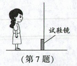 7. 如图,小华在商场买鞋时,她直立面向竖直放置在地面上的试鞋镜,看不到镜中自己脚上的新鞋,为在镜中看到鞋子,以下做法可行的是 (