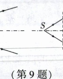 9. 如图所示虚线方框内各放置一个透镜,发光点 S 发出的两束光通过透镜前后的方向如图所示,若甲、乙透镜的焦距分别为 f_{甲}、f_{乙},且 S 点距甲、乙两透镜的距离相等,下列说法正确的是 (