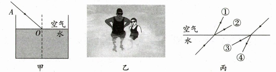 (3)如图乙所示,站在清澈的游泳池里,在岸上的人会发现泳池里人的腿变短,能描述此现象的光路是图丙中的