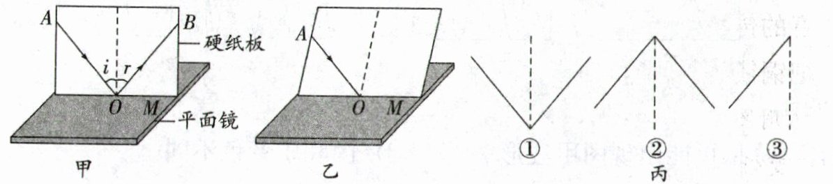 (4)实验过程中若将纸板倾斜,如图乙所示,让光仍贴着纸板沿AO方向射向镜面,此时反射光不在纸板这一平面内;通过平面镜观察镜中硬纸板的像,则看到的像与图丙中③相符