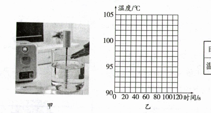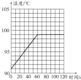 (1)当水温升到 $ 91^{\circ}C $ 时,每隔 $ 10 $ 秒钟记录一次温度计的示数,数据记录在表中,此实验环境下水的沸点是____$ ^{\circ}C $.