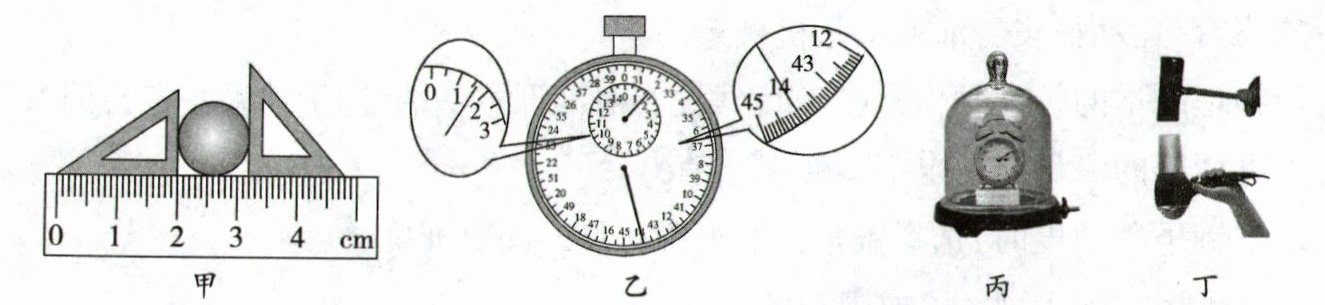 $ s $.(2)图丙的实验中,不断抽气,罩内的空气越来越稀薄,听到的铃声