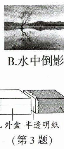 3. 如图所示为某同学自制的针孔照相机.将针孔对准屋外,就可以在半透明纸上看到屋外景物的像.以下实例的原理与此不同的是(
