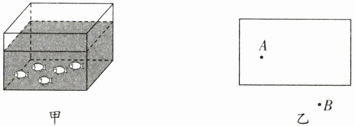 24. (3分)如图甲是小明家的鱼缸,鱼缸左侧的玻璃上有一条鱼的像.图乙是其简化图,A为鱼缸中实际的鱼,B为小明眼睛的位置.请你在乙图中画出: