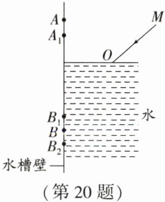 20.如图所示,小华同学用激光笔照射水面,在水槽壁上出现两个红点$ A 和 B $.
