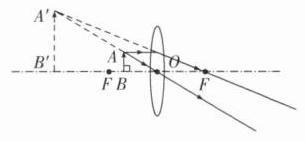 23.(3分)如图所示,$ F $为凸透镜的焦点,$ O $为其光心,$ A'B' $为物体经凸透镜所成的虚像,请作图画出物体$ AB $.
