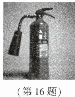 16. 在学校组织的消防演练中,消防干警给同学们介绍图中二氧化碳灭火器的生产、使用及灭火原理.在灌装过程中,二氧化碳气体通过