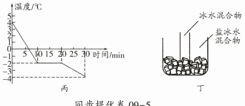 (5)盐水的凝固点为______$ ^{\circ}C $.与水相比,凝固点变______(填“高”或“低”)了.冬天路面积雪,路政部门会撒盐融雪,原因是______降低了,使积雪熔化.