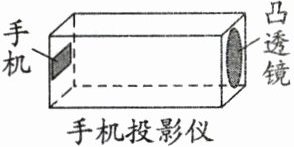 11. (2024·聊城中考)在学习了凸透镜成像规律后,小慧同学计划制作一个“手机投影仪”.现有器材如下:焦距分别为 10 cm、20 cm、30 cm 的凸透镜各一个,手机一部,长为 30 cm 的纸盒,胶带和剪刀等.“投影仪”模型如图所示,将手机和凸透镜分别固定在纸盒的两端,调整“投影仪”到墙面的距离,可在墙上看到手机画面清晰放大的像.下列说法正确的是 (