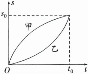 9.(2024·绵阳中考)甲、乙两辆赛车在赛道上行驶,在$0\text{~}t_{0}时间内通过的路程均为s_{0}$,此过程中两车通过的路程s与时间t的关系如图所示,下列说法中正确的是 (