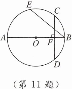 11. 如图,$AB为\odot O$的直径,点$C是\overset{\frown}{BE}$的中点,过点$C作CD\perp AB于点F$,交$\odot O于点D$,若$BE = 6$,$BF = 1$,则$\odot O$的半径长是( )