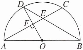 13. 如图,已知半圆$O的直径AB为3$,弦$AC与弦BD交于点E$,$OD\perp AC$,垂足为$F$,$AC = BD$,则弦$AC$的长为______.