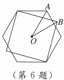 6. 如图,正六边形与正方形有两个顶点重合,且中心都是点$O$。则$\angle AOB= $