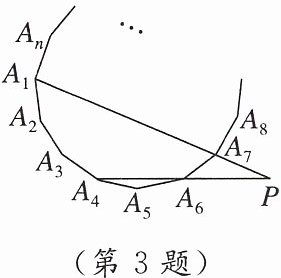 3. 如图,正$n边形A_1A_2A_3… A_n的两条对角线A_1A_7$,$A_4A_6的延长线交于点P$,若$\angle P = 24^{\circ}$,则$n$的值是(