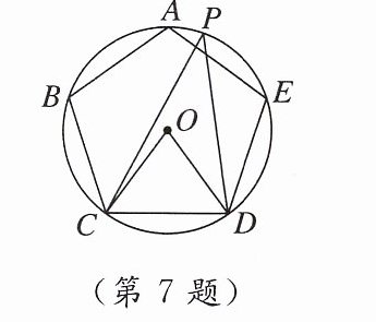 7. 如图,$\odot O是正五边形ABCDE$的外接圆,点$P是\overset{\frown}{AE}$上的一点,则$\angle CPD$的度数是(