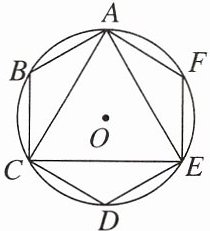 13. 如图,六边形$ABCDEF是\odot O$的内接正六边形,设正六边形$ABCDEF的面积为S_1$,$\triangle ACE的面积为S_2$,则$\frac{S_1}{S_2}= $____。