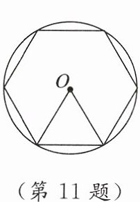 11. 新趋势数学文化我国魏晋时期数学家刘徽在《九章算术注》中提到了著名的“割圆术”,即利用圆的内接正多边形逼近圆的方法来近似估算,指出“割之弥细,所失弥少.割之又割,以至于不可割,则与圆周合体,而无所失矣”。“割圆术”孕育了微积分思想,他用这种思想得到了圆周率$\pi$的近似值为3.1416。如图,$\odot O$的半径为1,运用“割圆术”,以圆内接正六边形的面积近似估计$\odot O$的面积,可得$\pi的估计值为\frac{3\sqrt{3}}{2}$,若用圆内接正八边形作近似估计,可得$\pi$的估计值为(