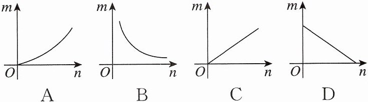 10. 扇文化是中华优秀传统文化的组成部分,在我国有着深厚的底蕴.如图,某折扇张开的角度为$120^{\circ}$时,扇面面积为S,该折扇张开的角度为$n^{\circ}$时,扇面面积为$S_{n}$,若$m = \frac{S_{n}}{S}$,则m与n关系的图象大致是(