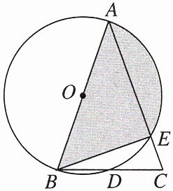 ∵AB = AC,$\therefore \angle ADB = 90^{\circ }$,$\therefore$AB是圆的直径.(2)【解】连结OE.