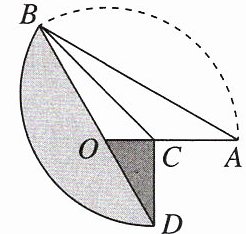 14. 如图,在扇形AOB中,$\angle AOB = 120^{\circ}$,半径$OA = 2$,点C是OA上一点,连结BC,沿BC将扇形折叠,使得点A落在BO的延长线上的点D处,连结CD,求图中阴影部分的面积(结果保留$\pi$).