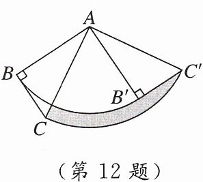 12. 如图,在$\triangle ABC$中,已知$\angle ABC = 90^{\circ}$,$\angle BAC = 30^{\circ}$,$BC = 1$.将$\triangle ABC$绕点A按逆时针方向旋转$90^{\circ}后得到\triangle AB'C'$,则图中阴影部分的面积为(