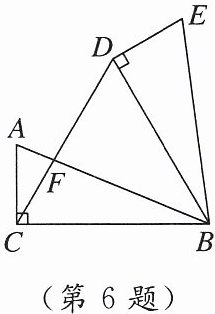 6. 如图,在$Rt\triangle ABC$中,$\angle ACB = 90^{\circ}$,$AC = 5$,$BC = 12$,将$\triangle ABC$绕点B顺时针旋转$60^{\circ}$,得到$\triangle EDB$,连结DC交AB于点F,则$\triangle ACF与\triangle BDF$的周长之和为(
