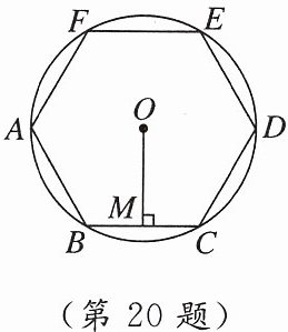 20. 如图,正六边形ABCDEF内接于$\odot O$,$\odot O$的半径为6,则这个正六边形的边心距OM的长为(