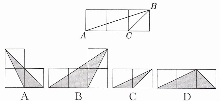 7. 如图,小正方形的边长均为1,则下列选项中的三角形(阴影部分)与△ABC相似的是(