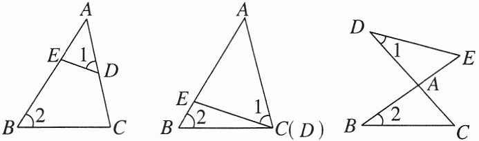 方法点拨:如图,若∠1= ∠2,则△ADE∽△ABC.
