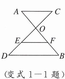 变式1-1 如图,已知AB,CD相交于点O,OA= 4,OC= 3,EF是△ODB的中位线,且AC//EF,OE= 2,那么OB的长为(