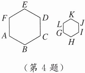 4. 如图,六边形$ABCDEF\sim六边形GHIJKL$,相似比为$2:1$,下列结论中,正确的是(