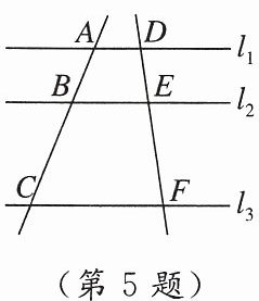 5. $[2025宁波月考]$如图,直线$l_1// l_2// l_3$,直线$AB$,$DE分别交l_1$,$l_2$,$l_3于点A$,$B$,$C和D$,$E$,$F$,若$AB:AC = 2:5$,$EF = 15$,则$DF$的长等于(