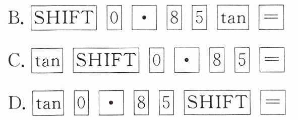 6. 已知$\tan A = 0.85$,用计算器求$\angle A$的大小,下列按键顺序正确的是(