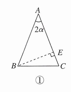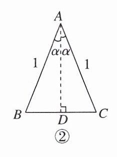 (2) 如图①,图②,在$\triangle ABC$中,$AB = AC = 1$,$\angle BAC = 2\alpha$,请根据提示,利用面积方法验证结论。