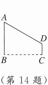 14. 如图,某工厂为了提升生产过程中所产生废气的净化效率,需在气体净化设备上增加一条管道$A - D - C$,已知$DC\perp BC$,$AB\perp BC$,$\angle A = 60^{\circ}$,$AB = 11\mathrm{m}$,$CD = 4\mathrm{m}$,则管道$A - D - C$的总长为______$\mathrm{m}$。