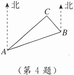 4. 如图,C岛在A岛的北偏东50°方向,在B岛的北偏西40°方向,则∠ACB的度数为(