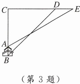 3. [2025杭州西湖区月考]随着现代科技的发展,可利用无人机测算鼓楼AB的高度.如图,已知无人机在C点与地面B点的垂直距离为113米,从C点水平飞行至D点时,俯视地面B点,测得∠CDB= 45°,继续水平飞行40米,即DE= 40米,在点E俯视鼓楼顶A点,测得∠CEA= 30°,若点A,B,C,D,E在同一平面内,则鼓楼AB的高度约为