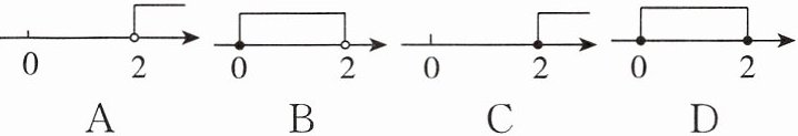 5. 已知直线$l与半径为2的\odot O$的位置关系是相离,则点$O到直线l$的距离的取值范围在数轴上的表示正确的是(